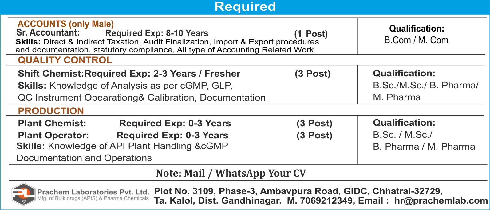 Contact No. : 9925011939