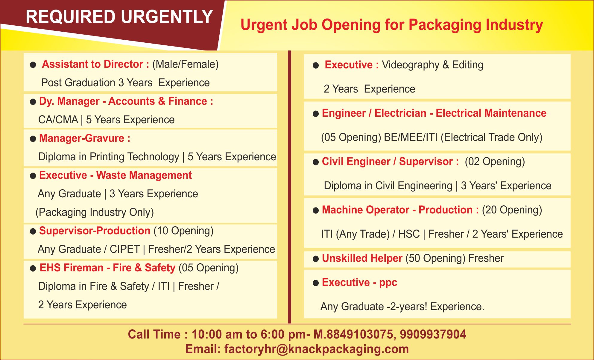 Contact No. : 9512554477
