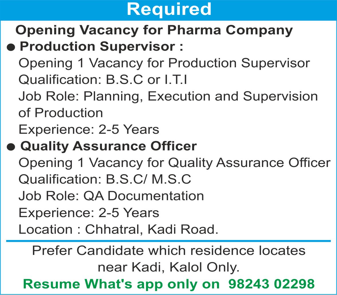 Contact No. : 9825899455