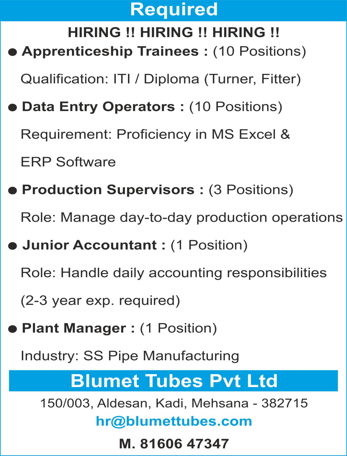 Contact No. : 02764277861